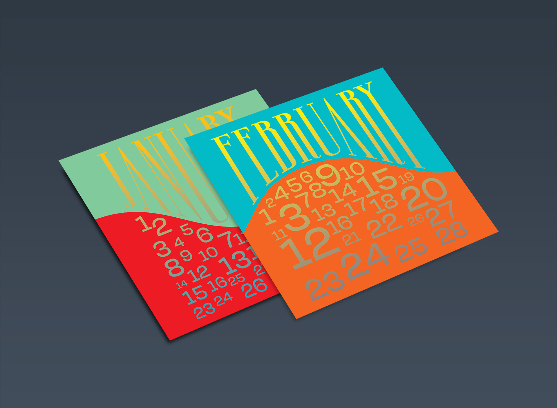 This was a typography challenge to make a Calendar without using the standard calendar format. I wanted to play with contrasting & complimentary colors to see how they interacted with each other.